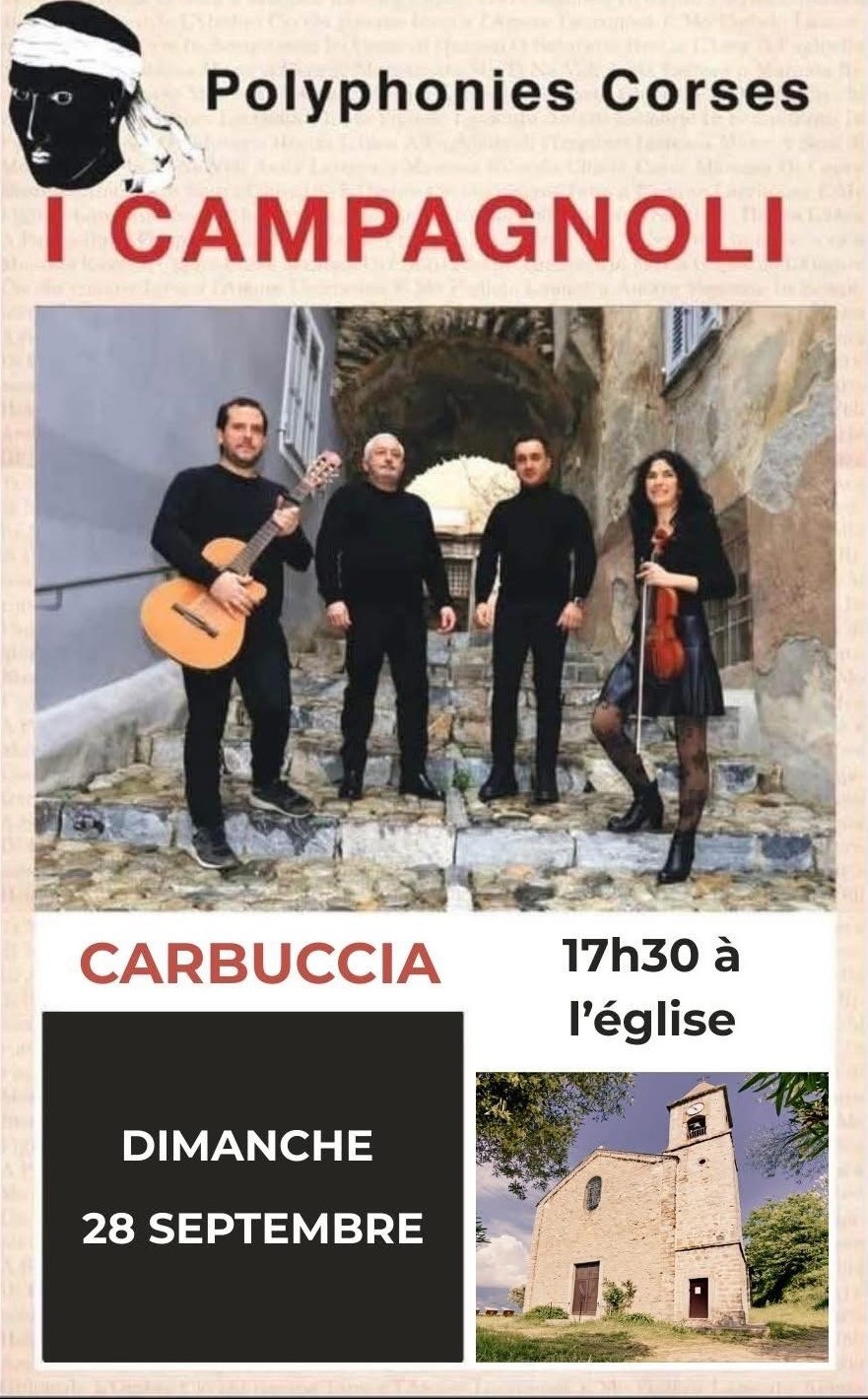 Venez écouter un très beau concert de polyphonies corses à l’église de Carbuccia le 28 septembre à 17h30.