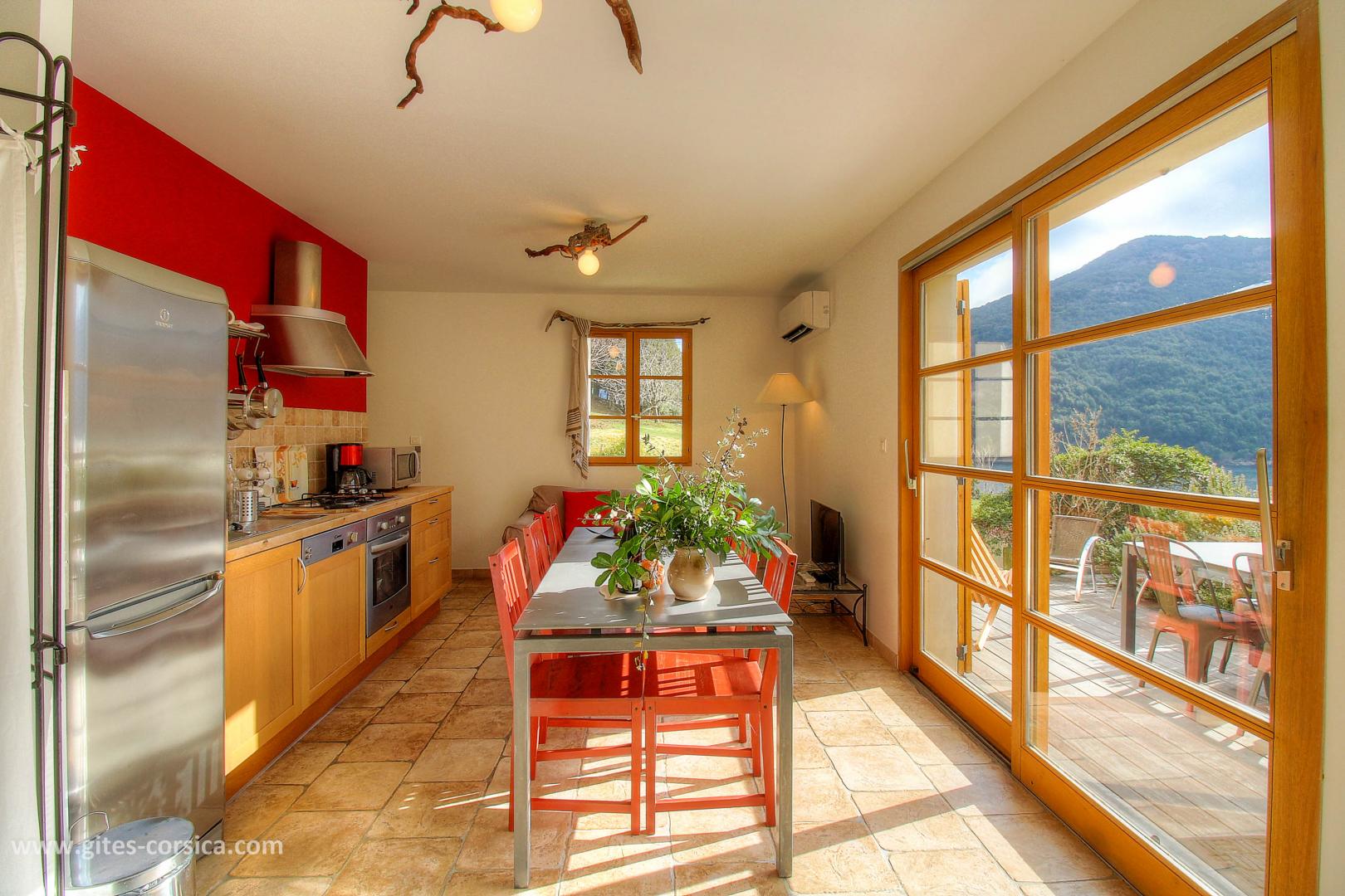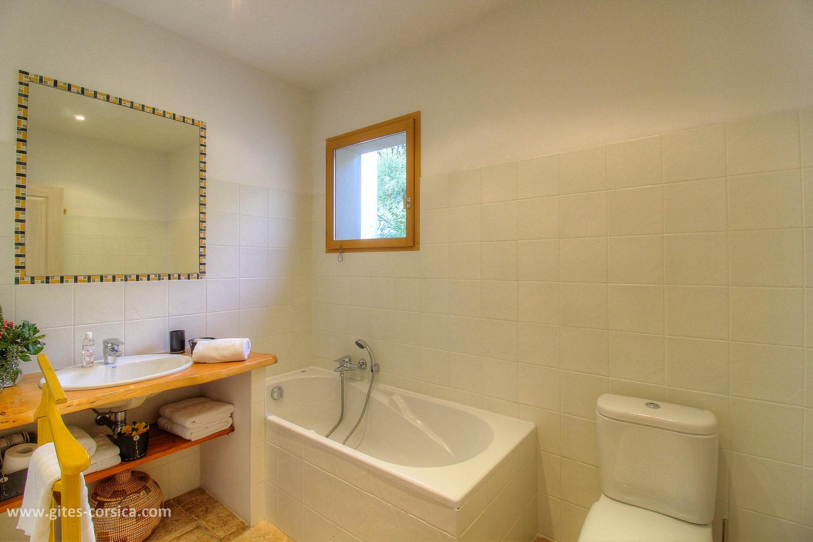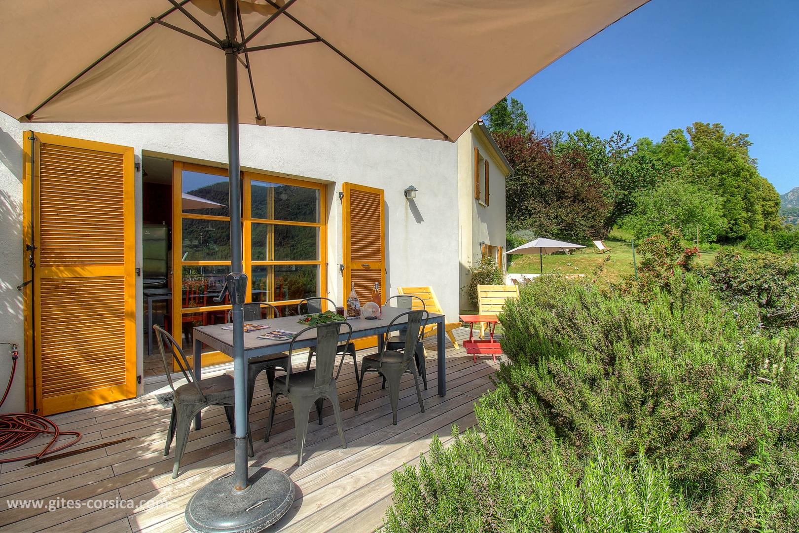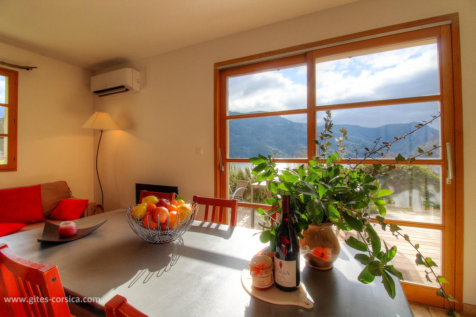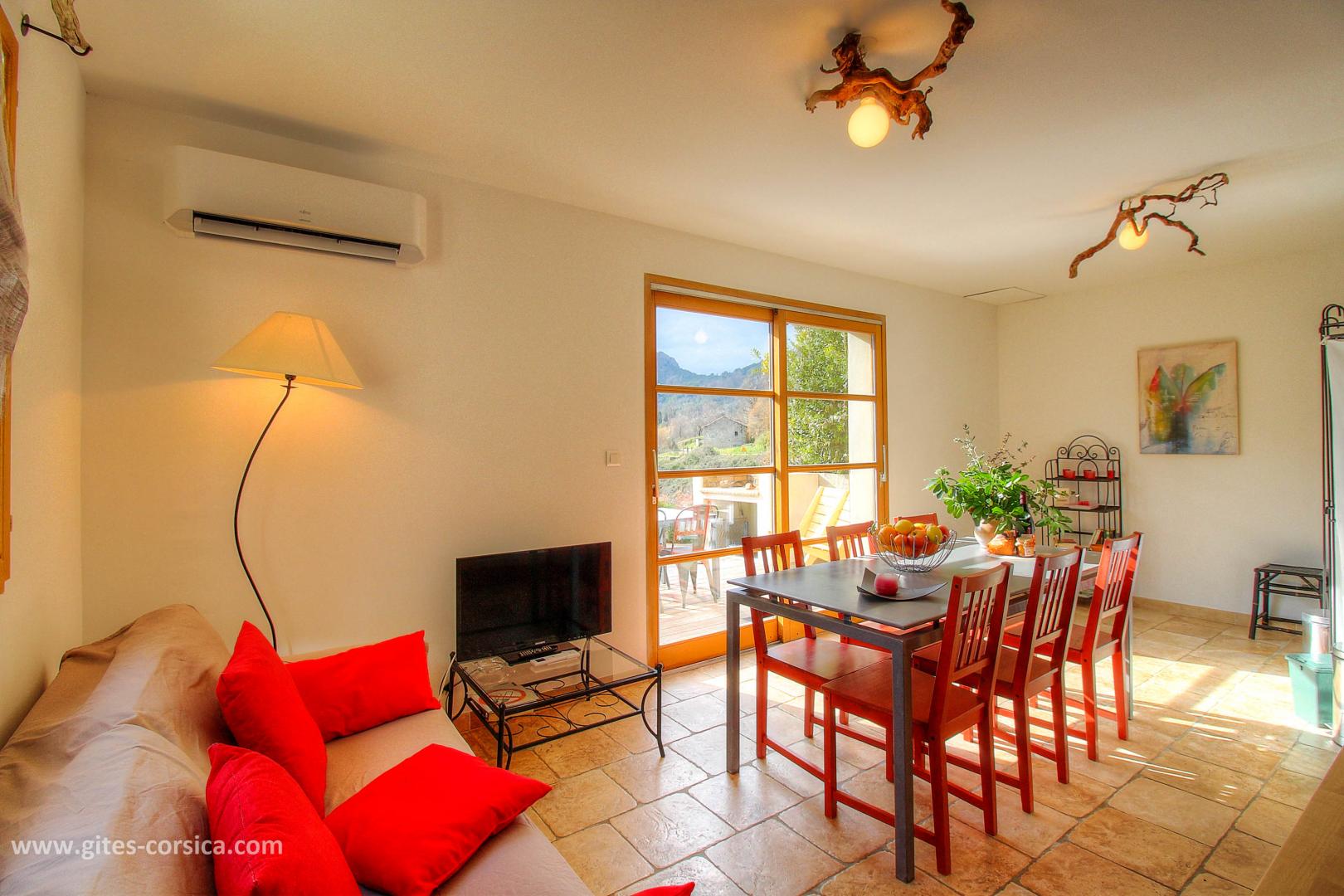 En bordure du lac de Tolla, gîte sur 2 étages mitoyen à un autre gîte et à proximité d’un 3ème. Il se compose ainsi :