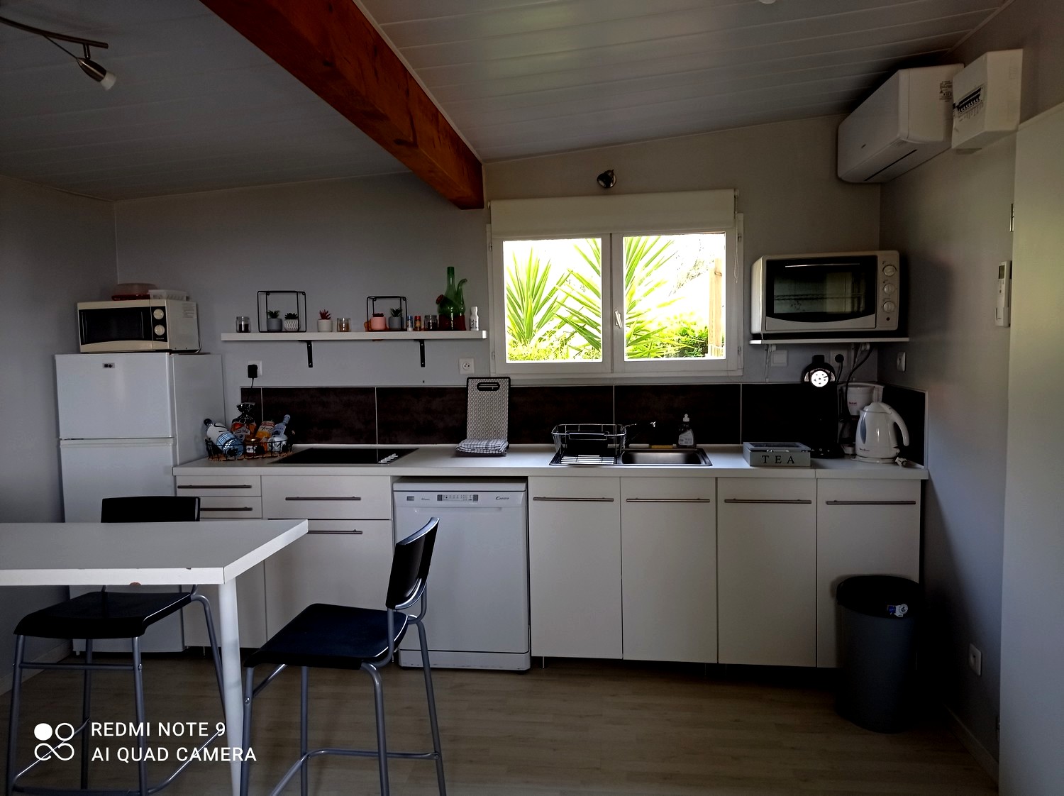 La cuisine est entièrement équipée (four, réfrigérateur, congélateur, micro-onde, grille pain, cafetière filtre et Senséo, bouilloire, ainsi qu’un lave vaisselle).