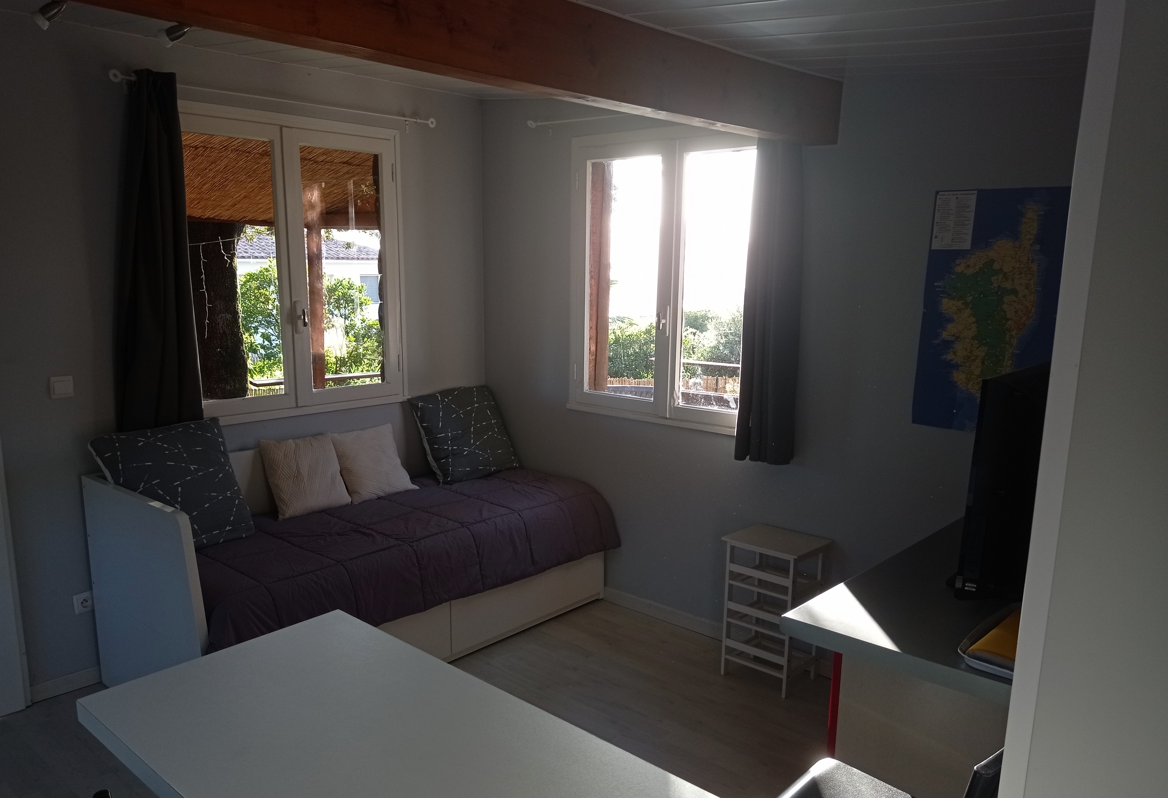 Le séjour comprend un canapé convertible en 160 , table basse et téléviseur, un espace repas pour les rares journées sans soleil mais vous apprécierez la détente en extérieur coté montagne ou coté mer.