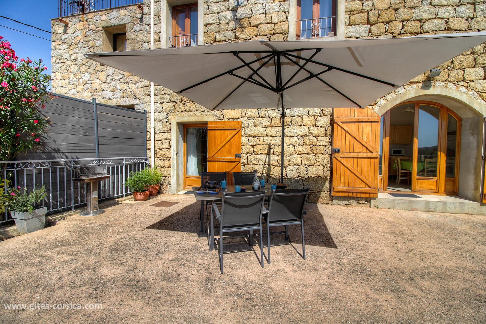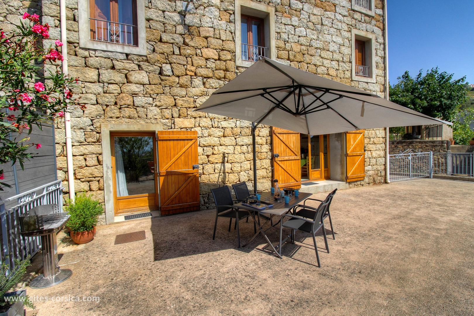 Dans le hameau : appartement de 85 m² au rez-de-jardin d’une maison indépendante en pierres comportant deux appartements à l’étage (entrée indépendante). Il se compose ainsi: