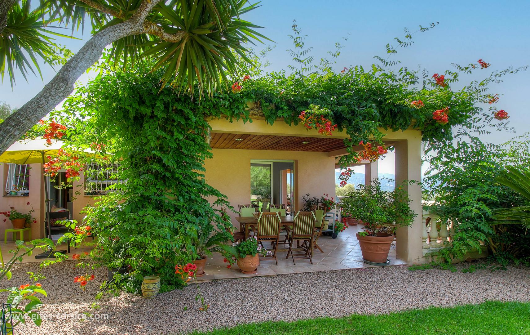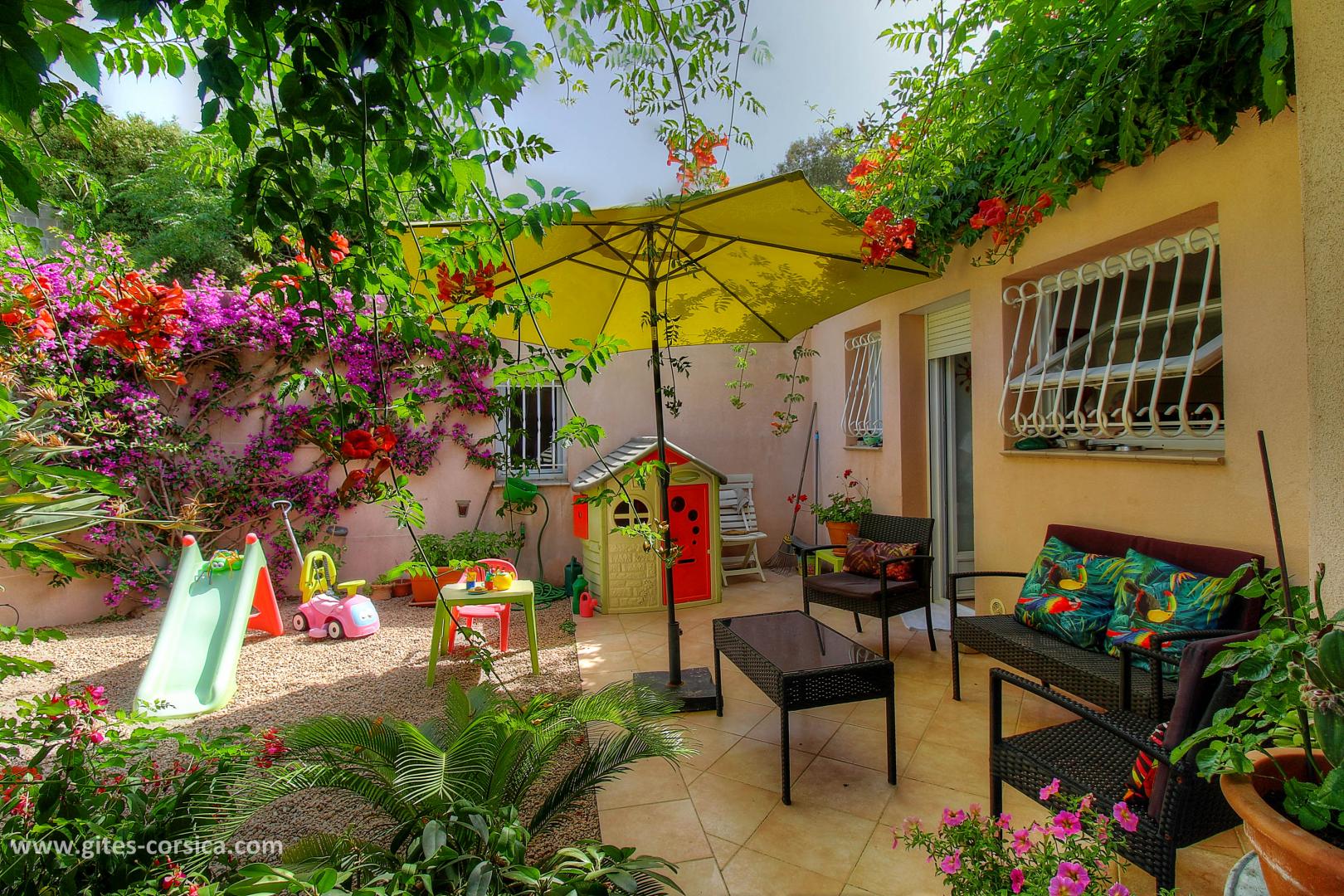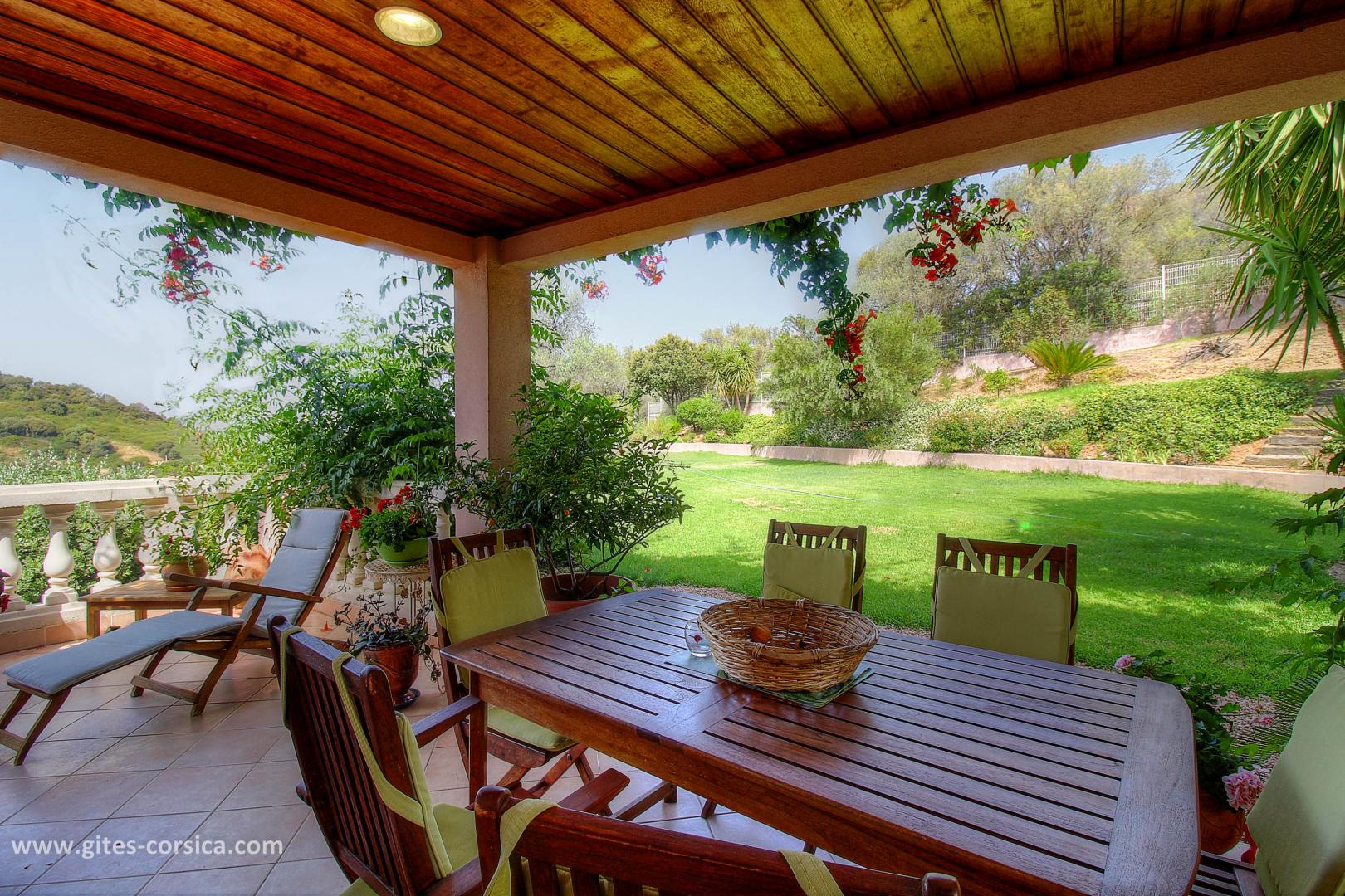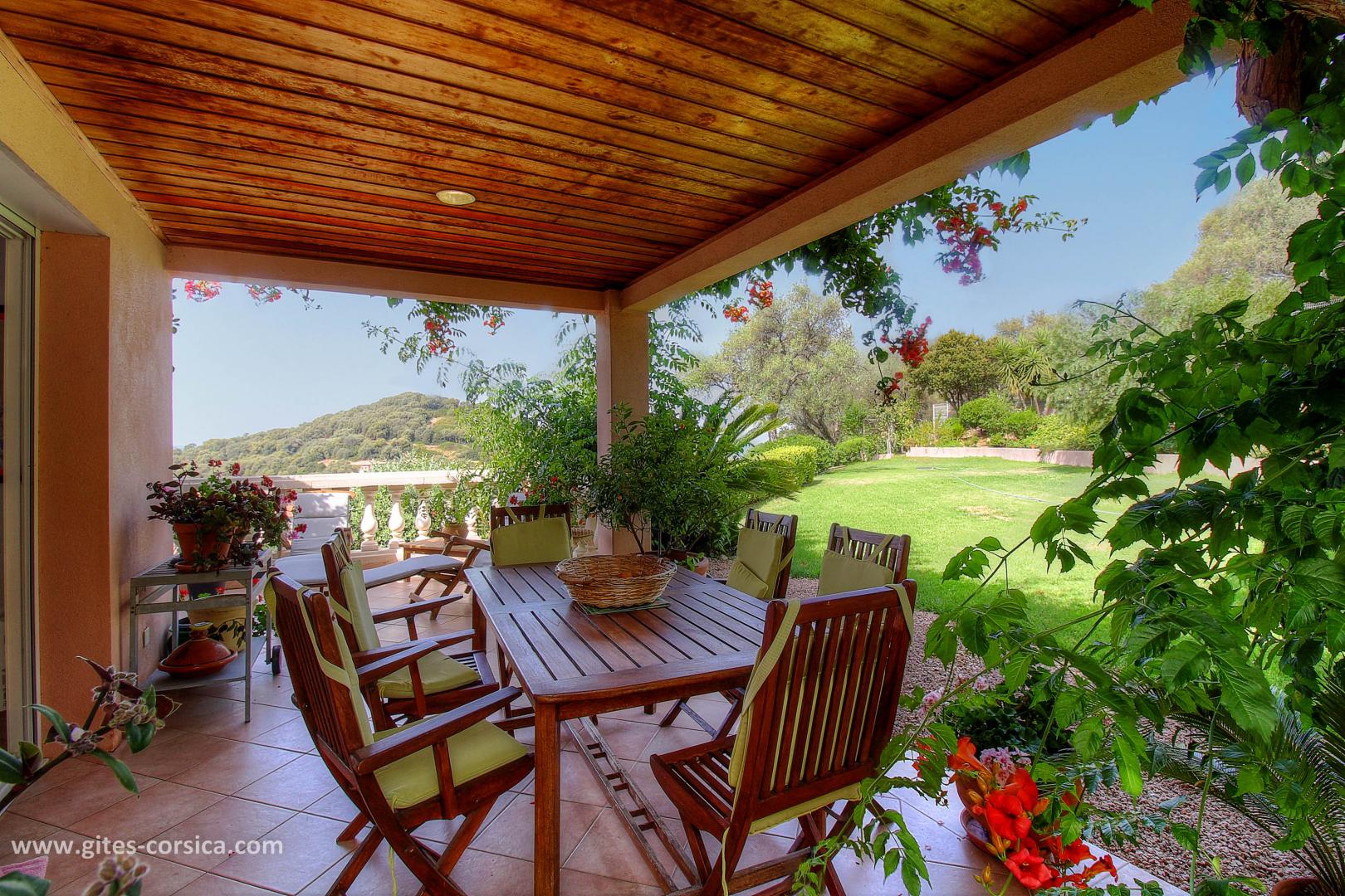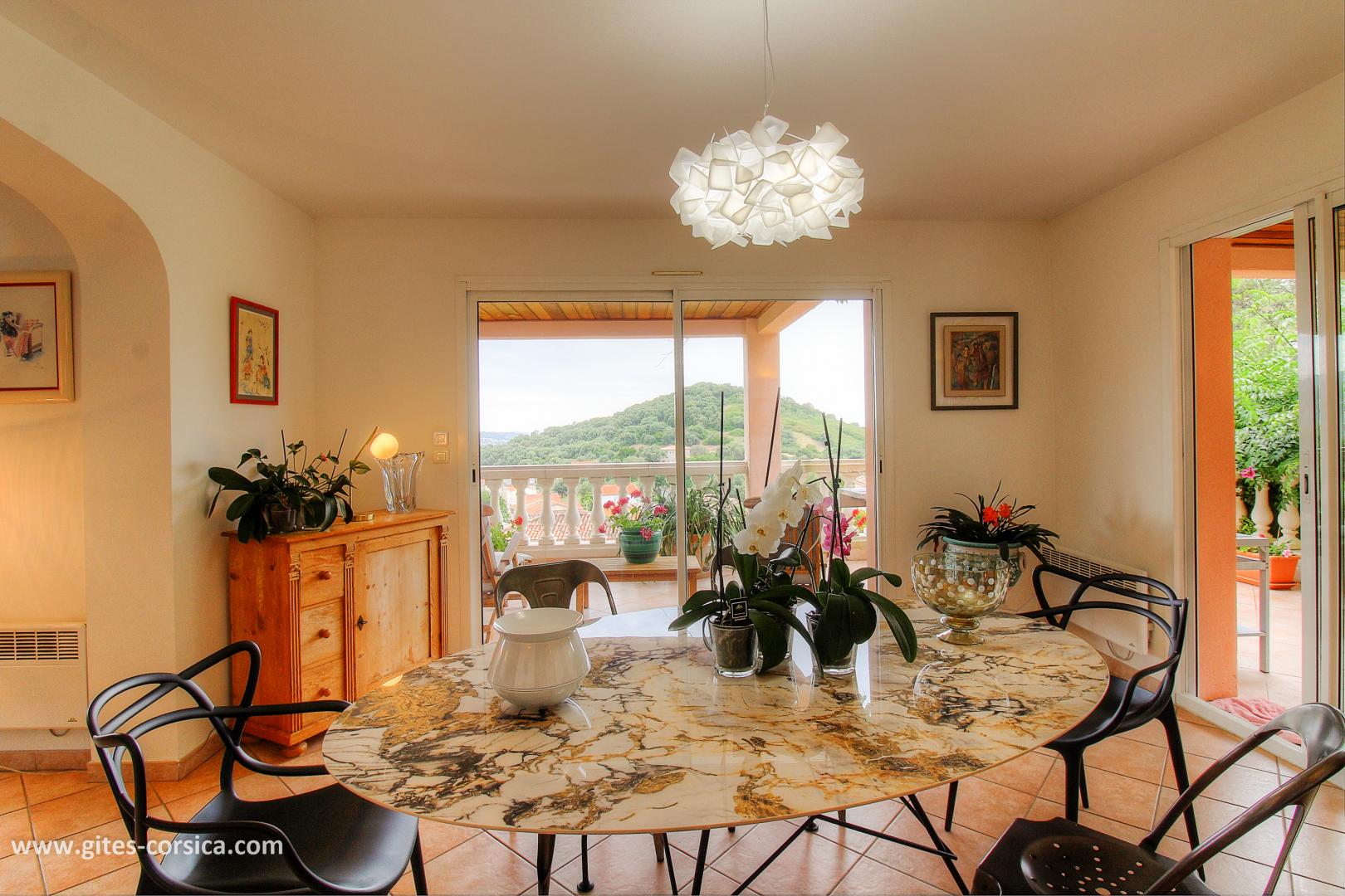 Les petits déjeuners se prennent sur la terrasse commune ou dans la salle à manger selon la météo, ils sont servis entre 8h30 à 10h30. Il est composé de boissons chaudes, viennoiserie, jus d’orange, canistrelli, fromage blanc, salade de fruits et de produits faits maison (confiture, gâteau), charcuterie et œuf sur demande.