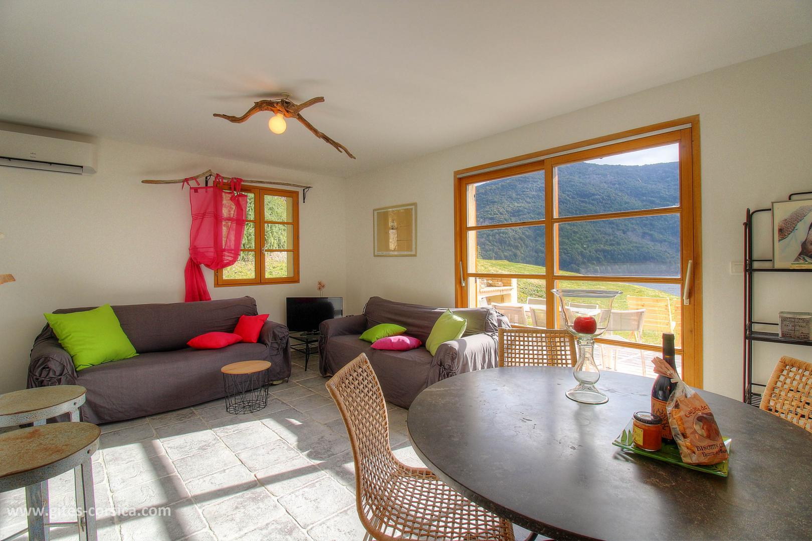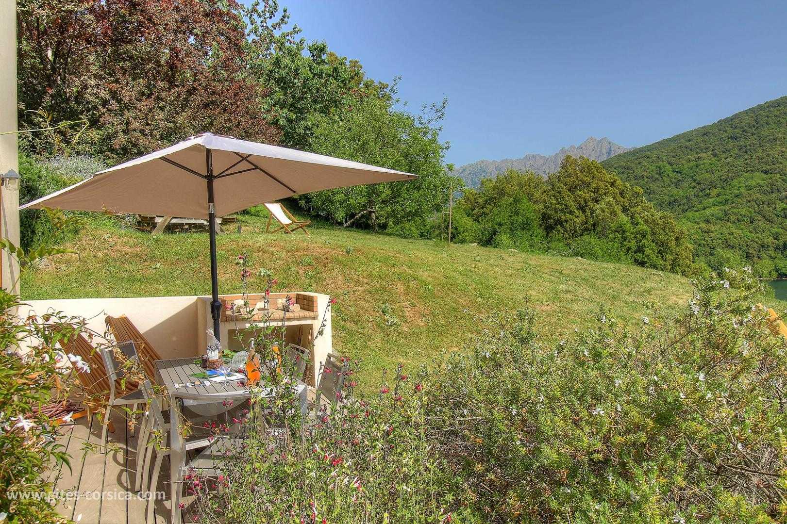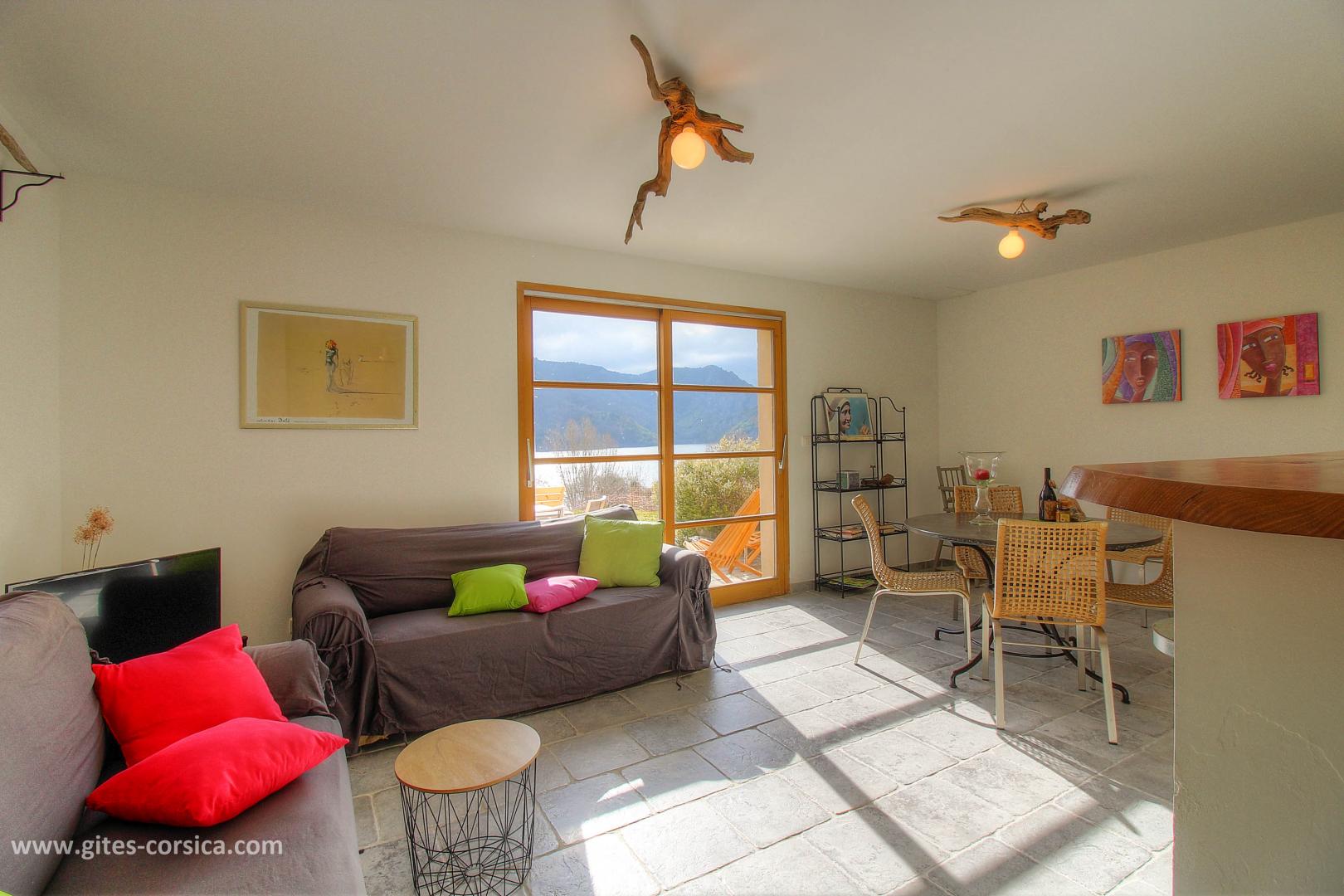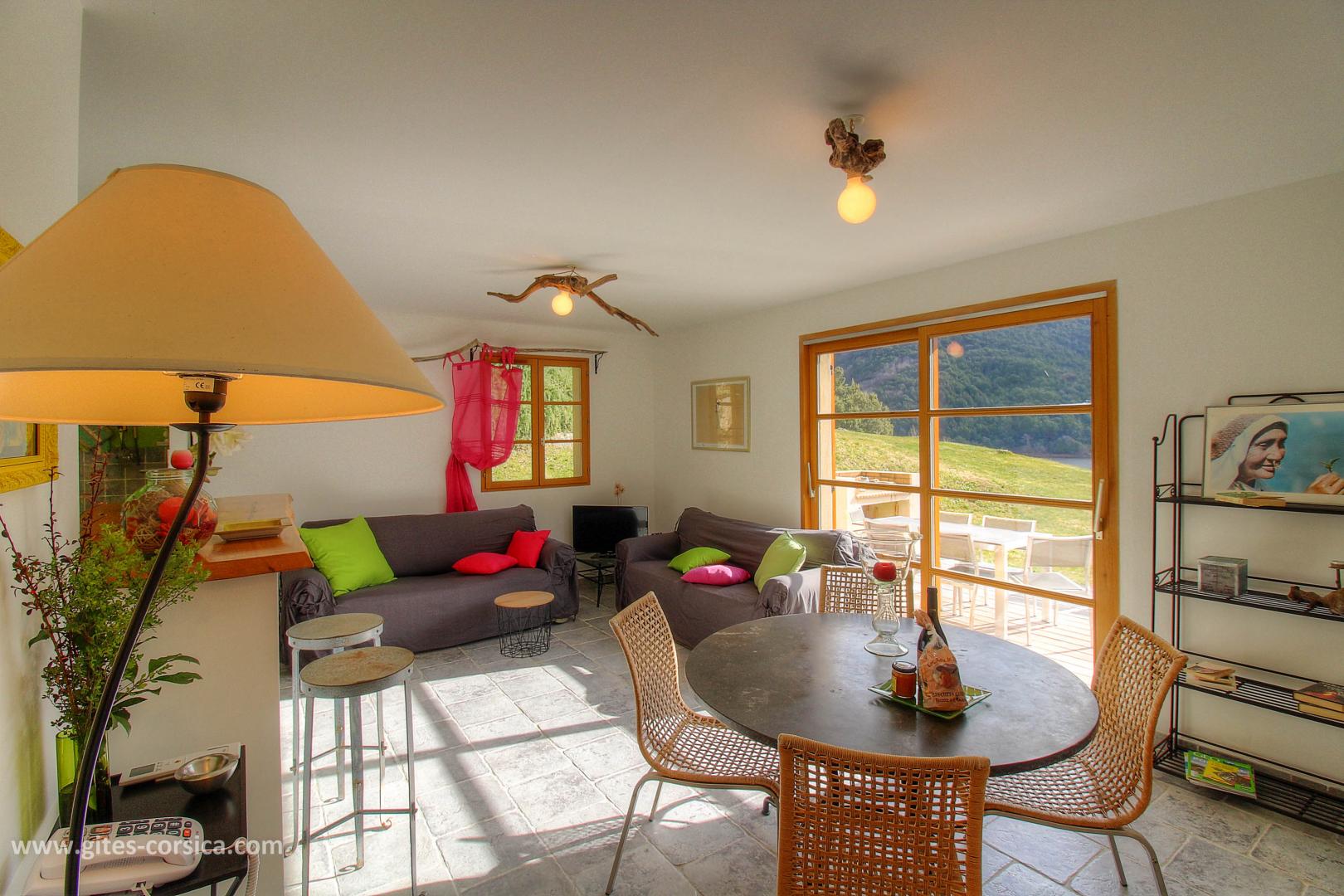 En bordure du lac de Tolla, gîte sur 2 étages à proximité de deux autres gîtes. Il se compose ainsi :