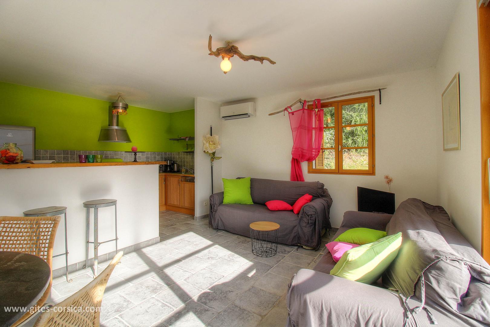 – Séjour/cuisine avec 1 convertible 2 personnes