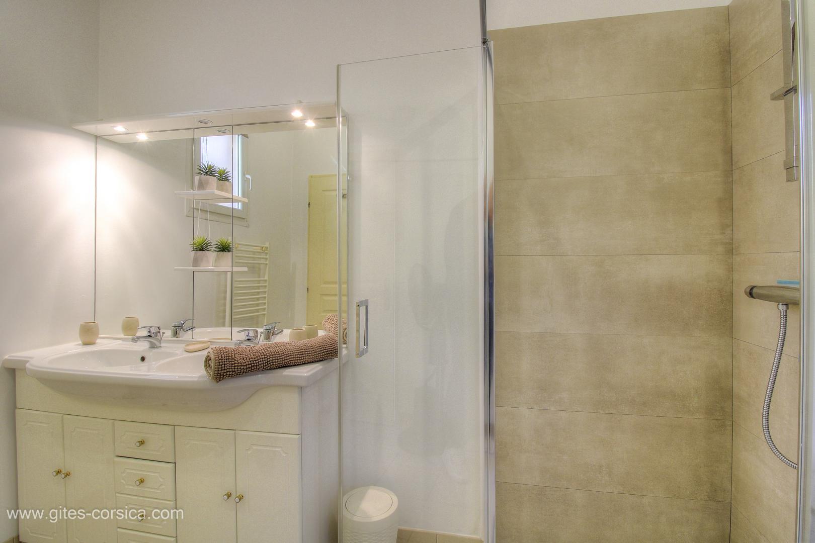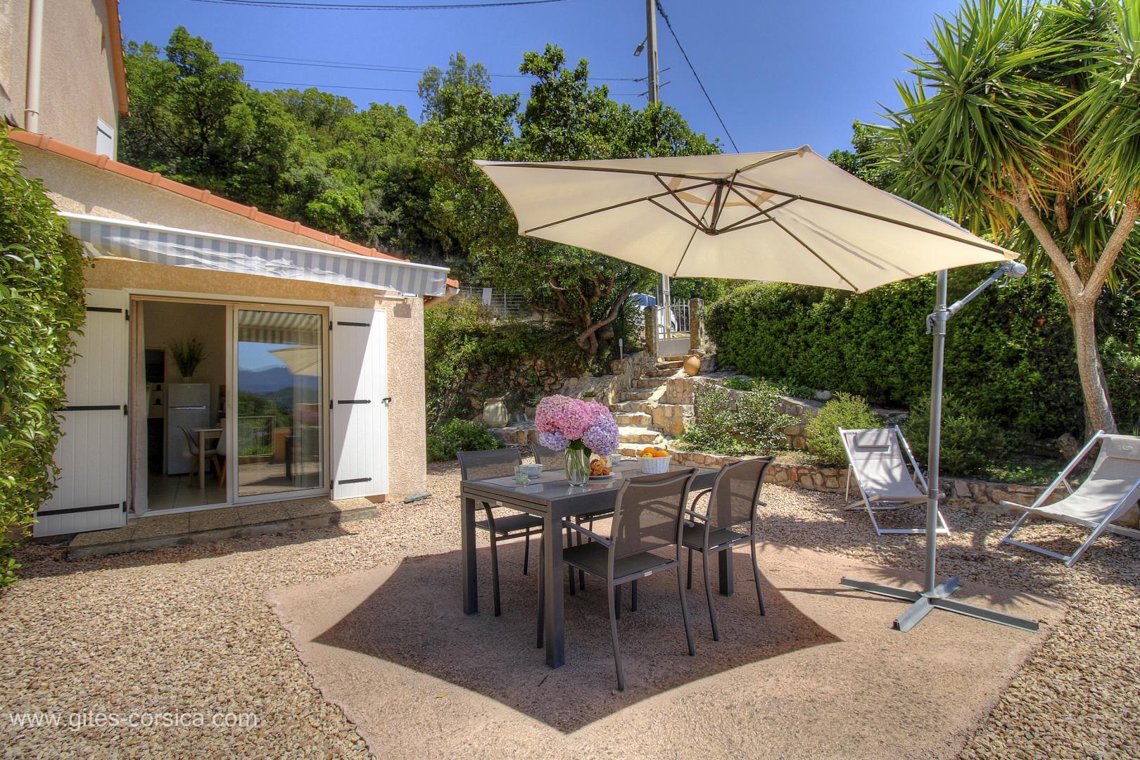Sur les hauteurs du village, gîte de 30 m² mitoyen à la maison des propriétaires (entrée indépendante). Il se compose ainsi :