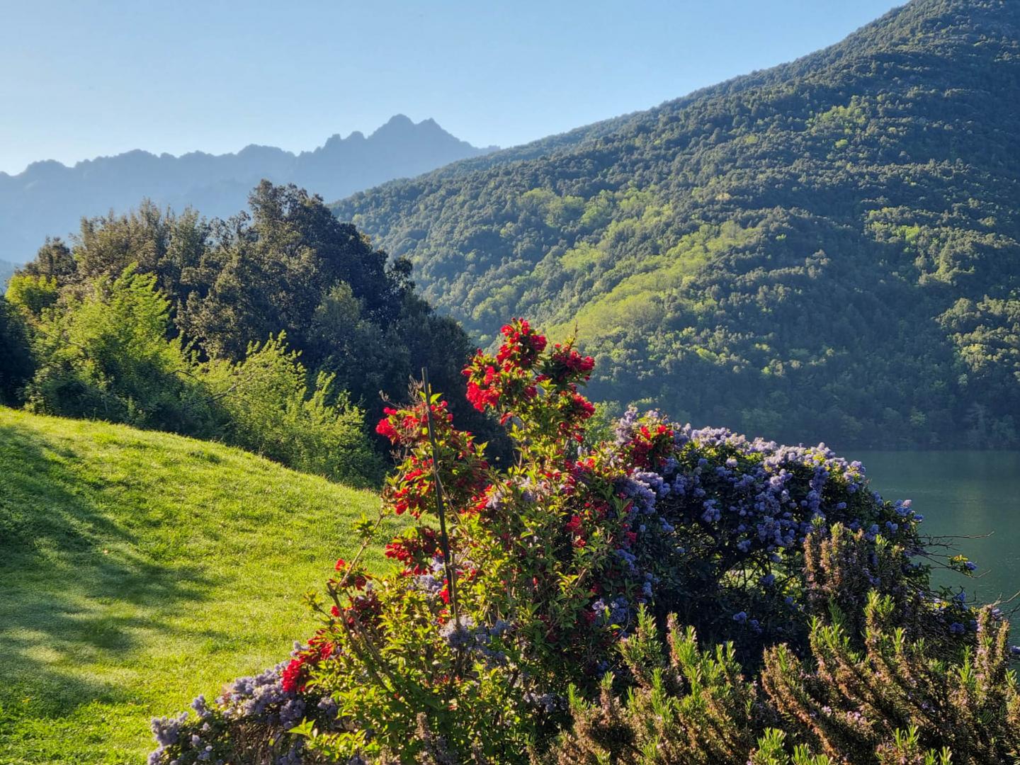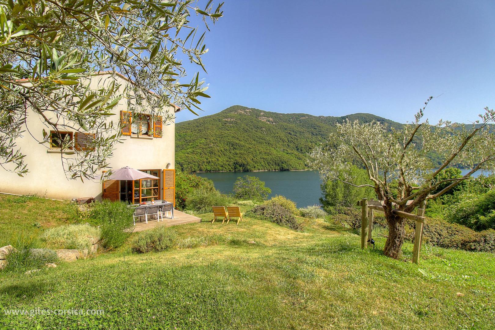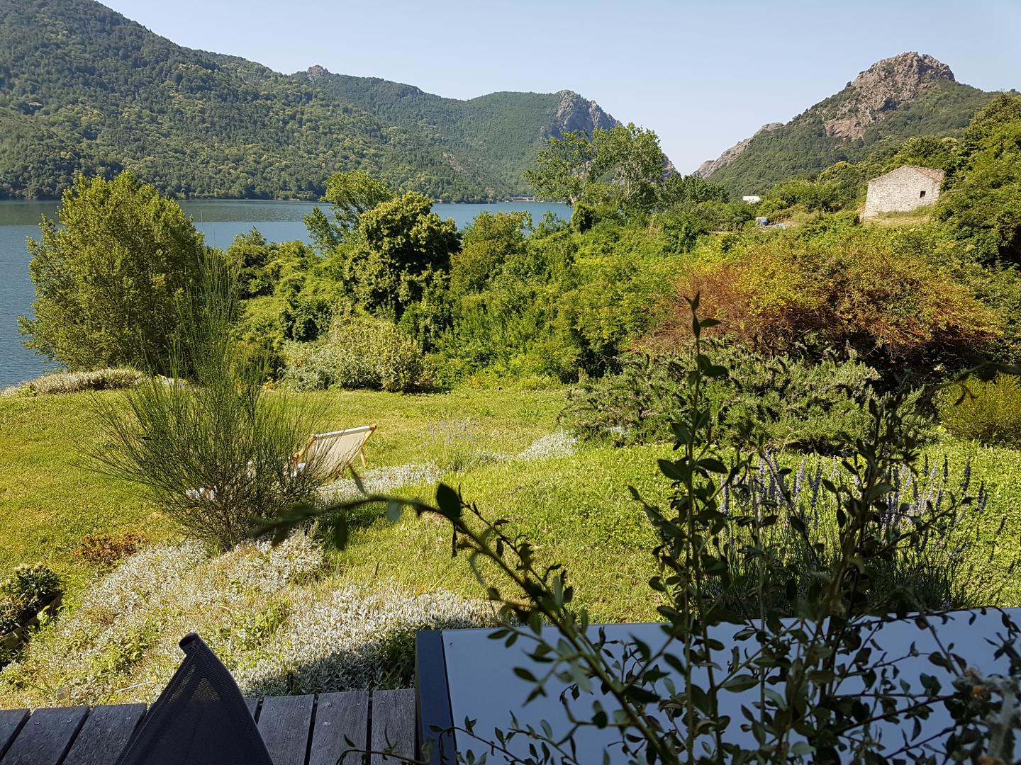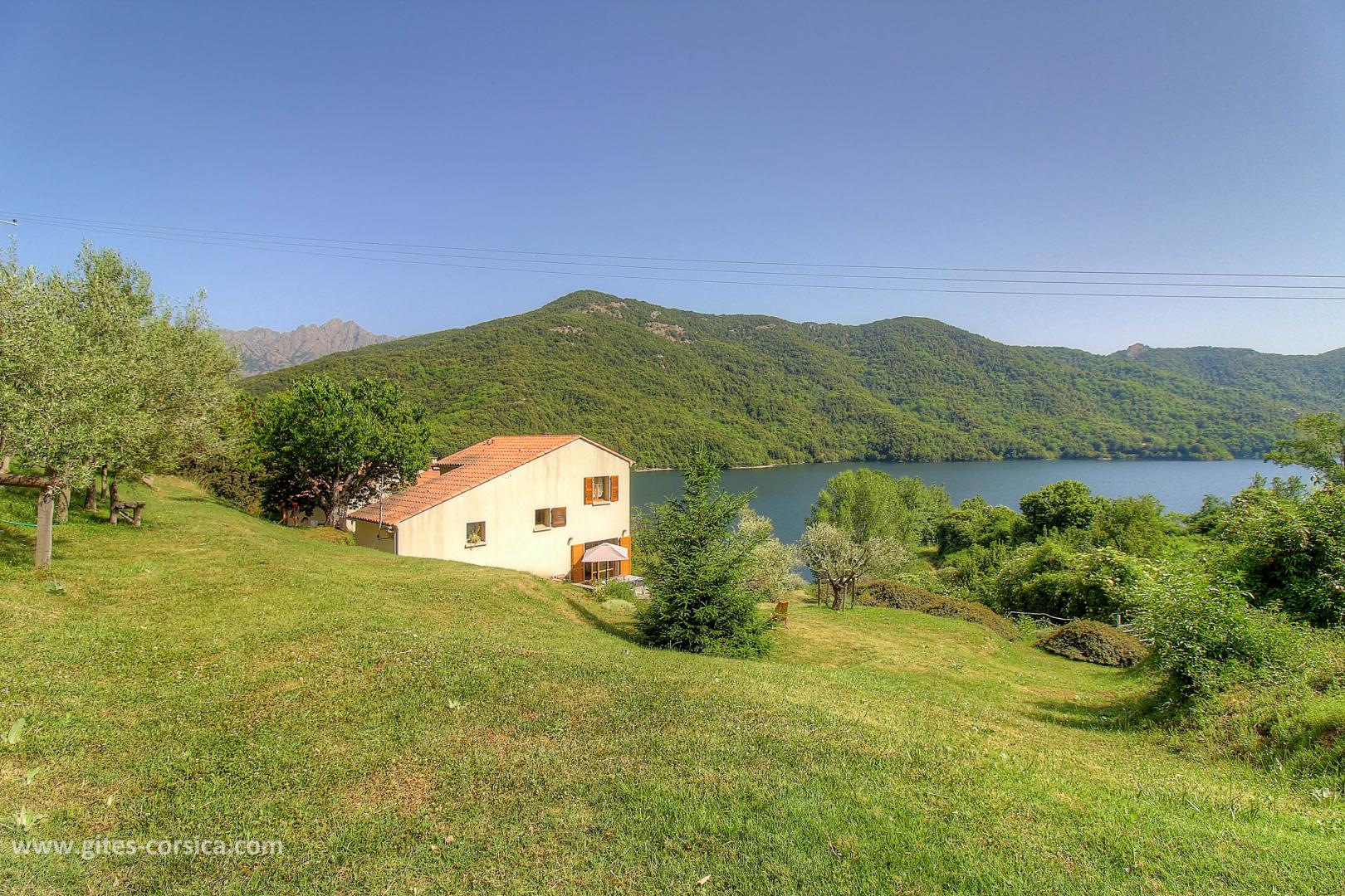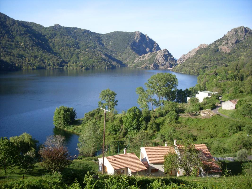 En bordure du lac de Tolla, gîte sur 2 étages mitoyen à un autre gîte et à proximité d’un 3ème. Il se compose ainsi :
