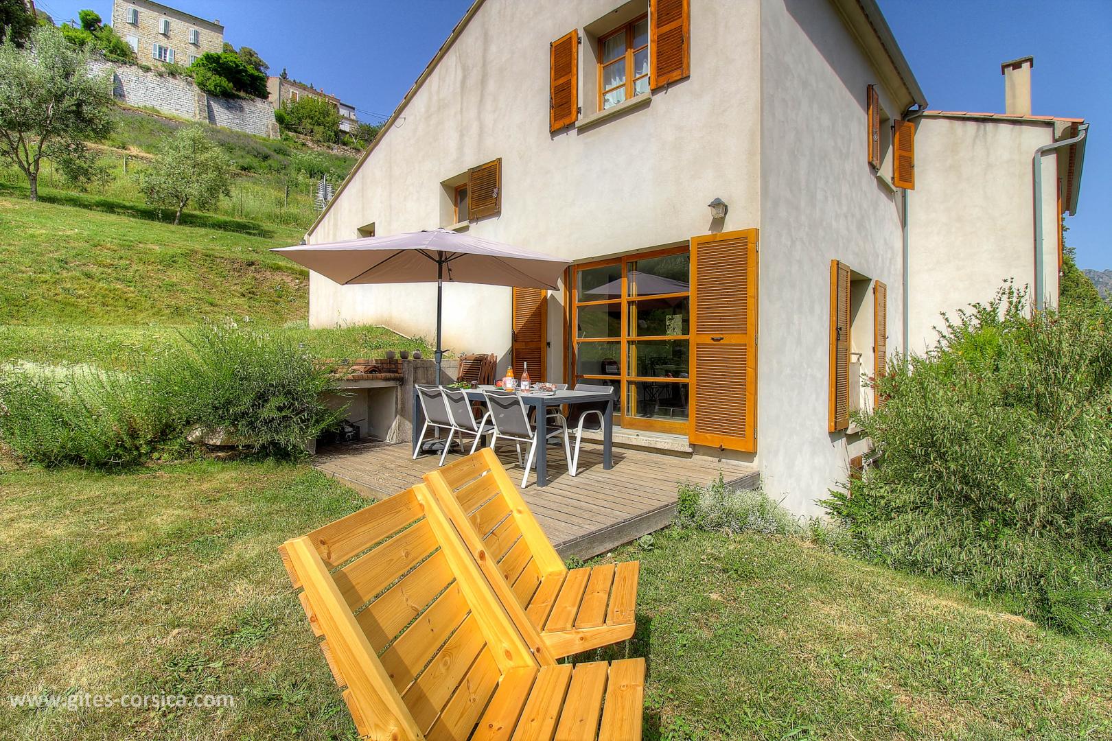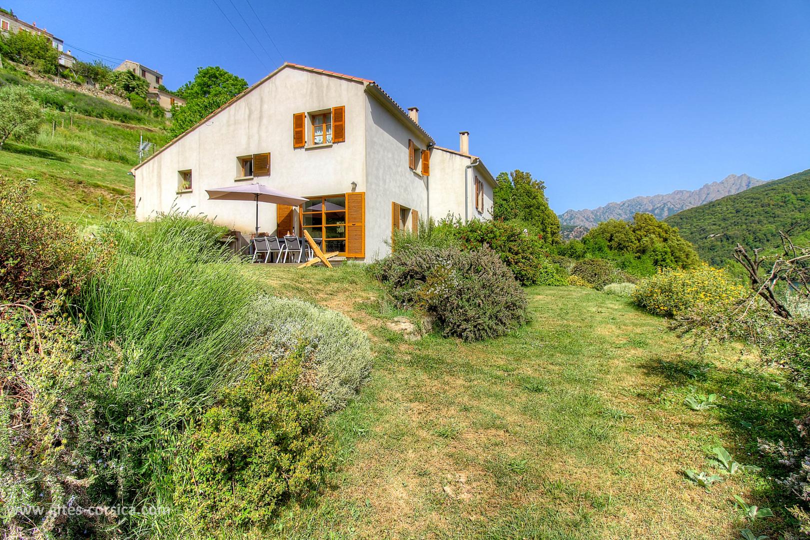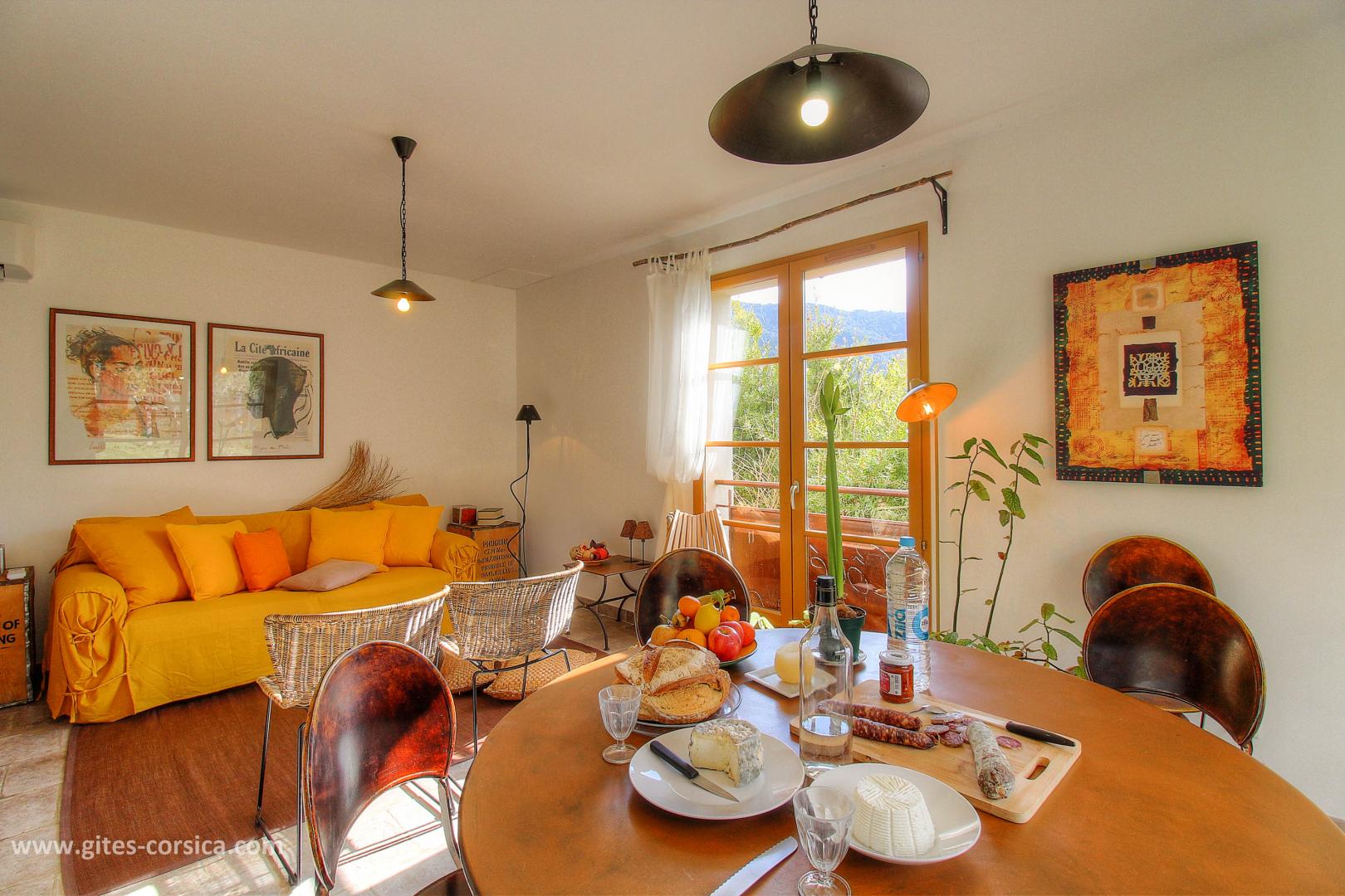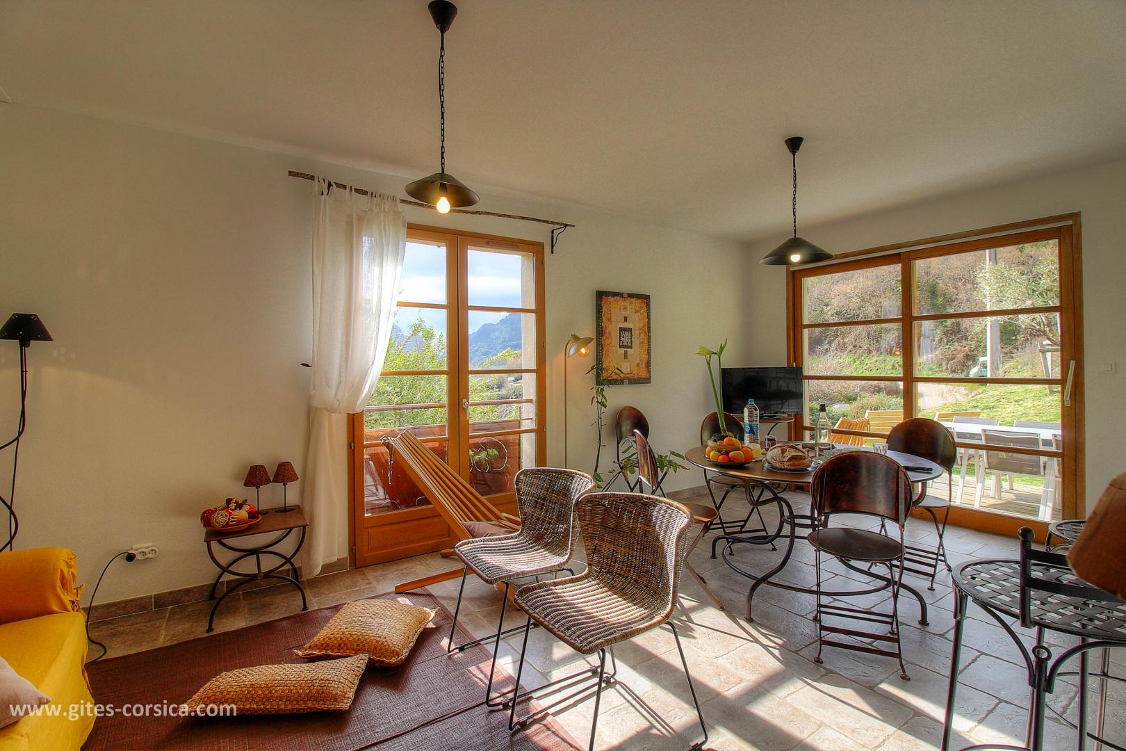 En bordure du lac de Tolla, gîte sur 2 étages mitoyen à un autre gîte et à proximité d’un 3ème. Il se compose ainsi :