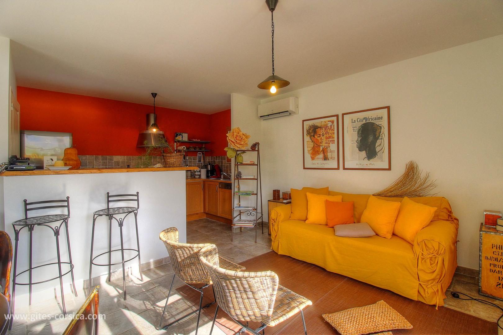 – Séjour/cuisine avec 1 convertible 2 personnes