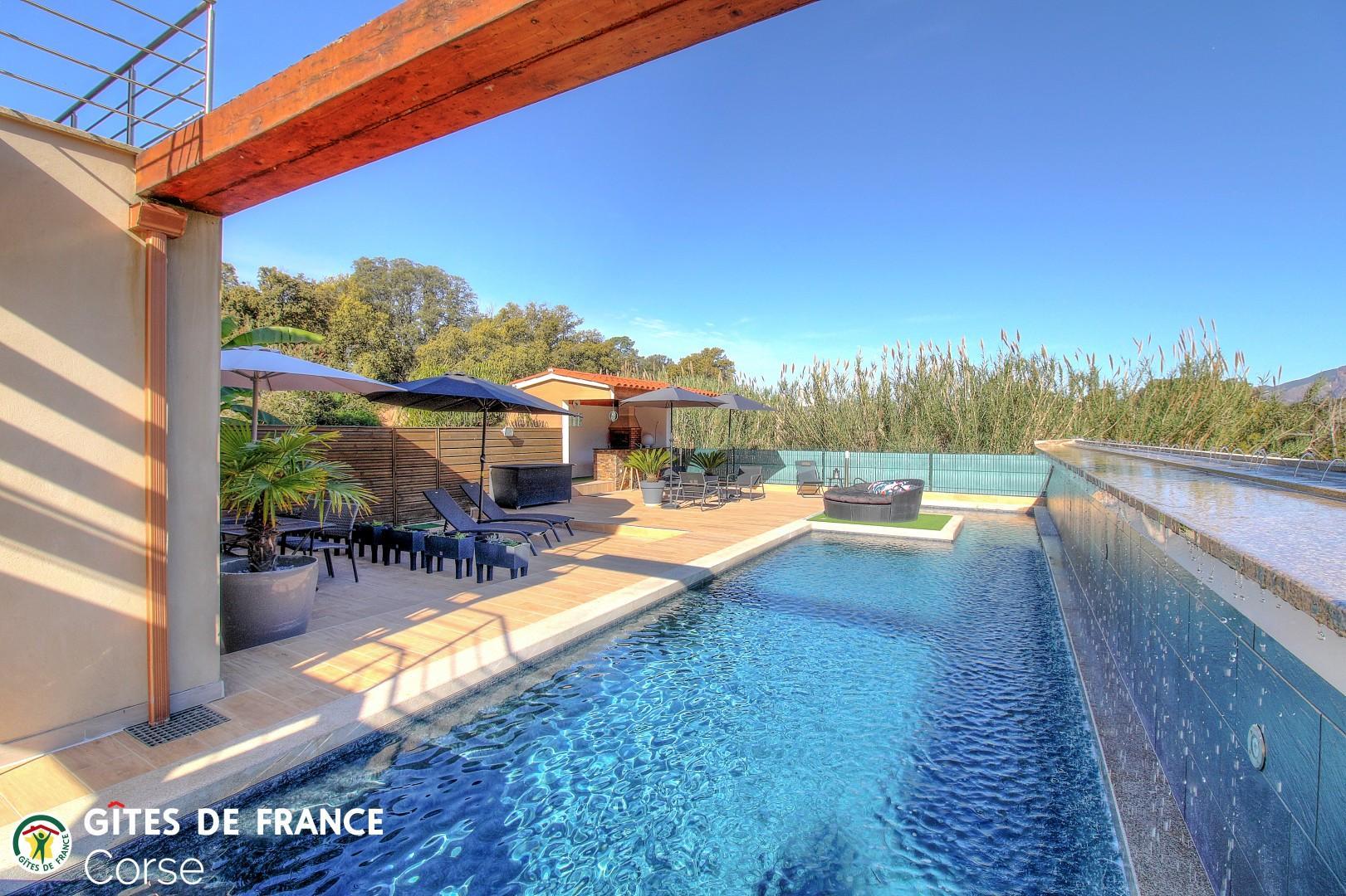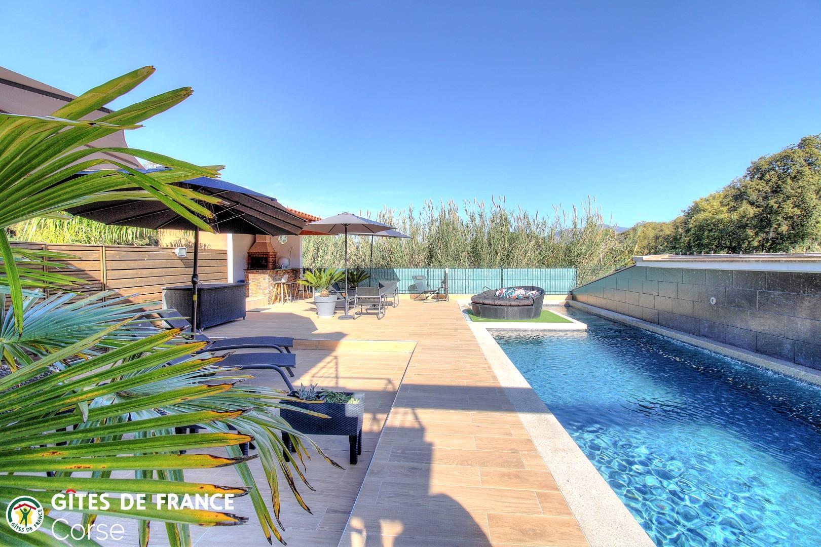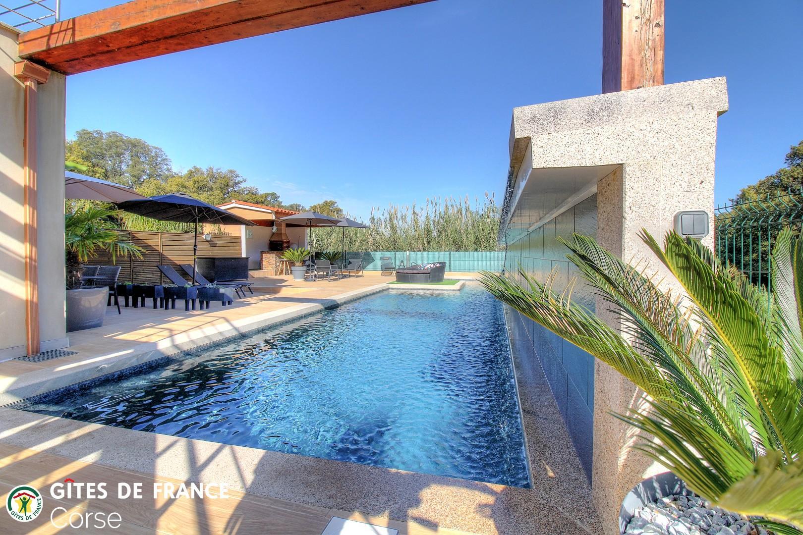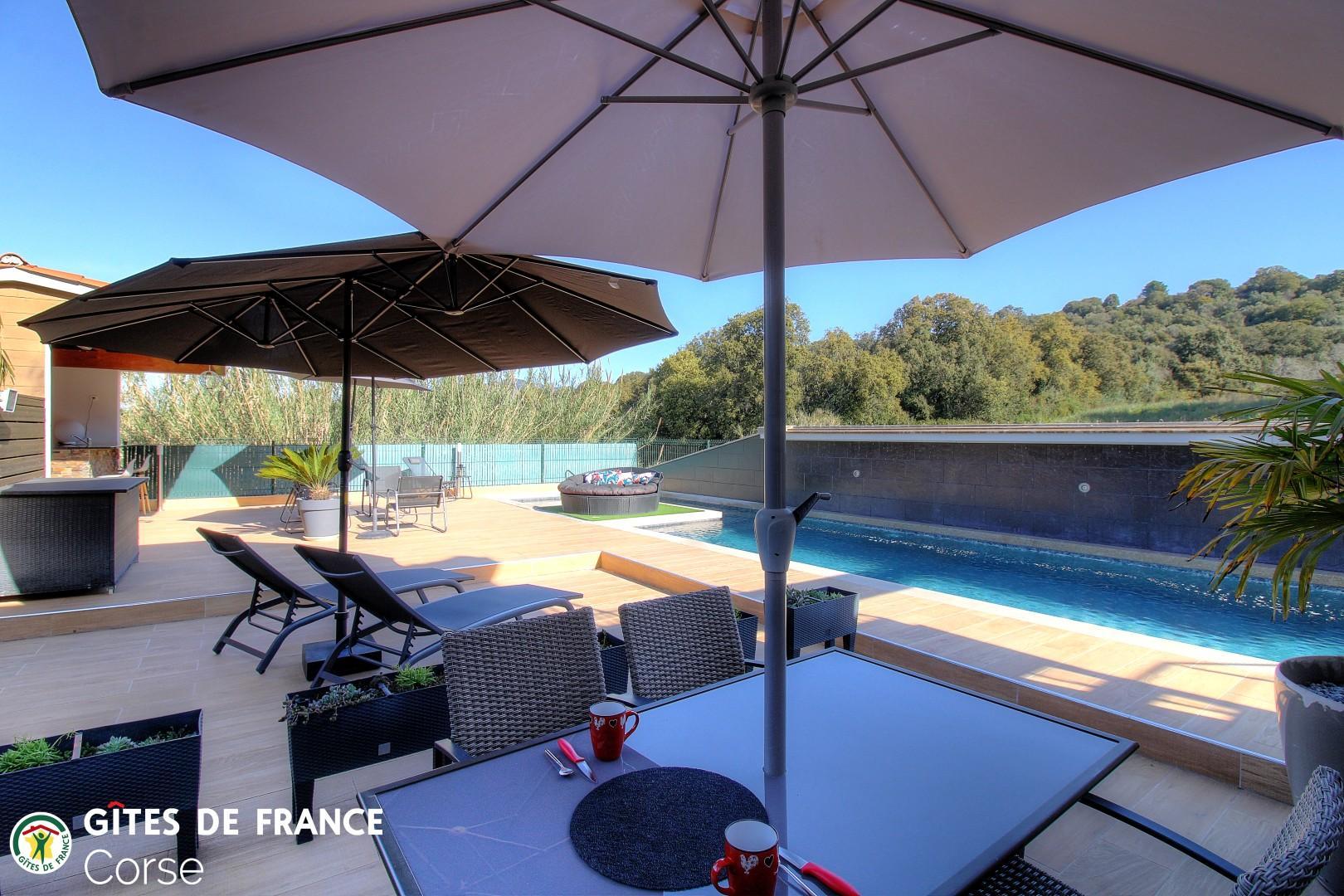 – Piscine avec bain à remous et cascade (14m x 4,5 m), commune avec les autres locations et les propriétaires, ouverte du 1er avril au 15 octobre, de 10h30 à 21h, sécurisée par une alarme sonore