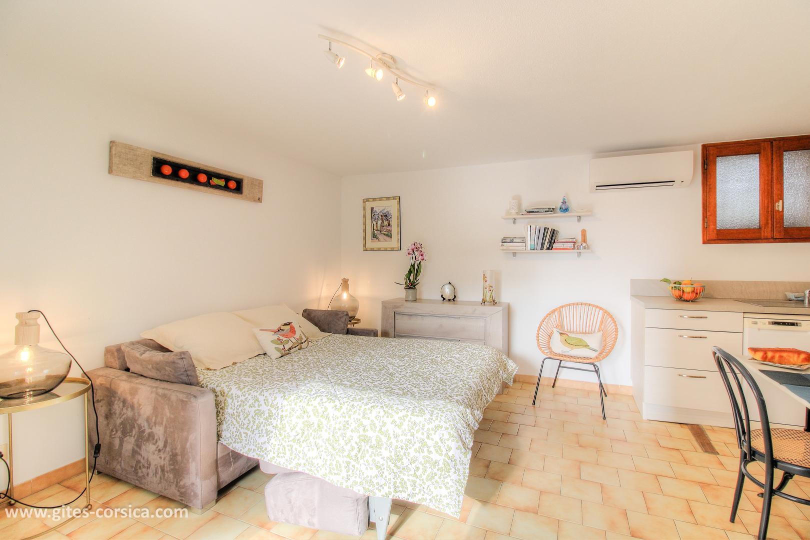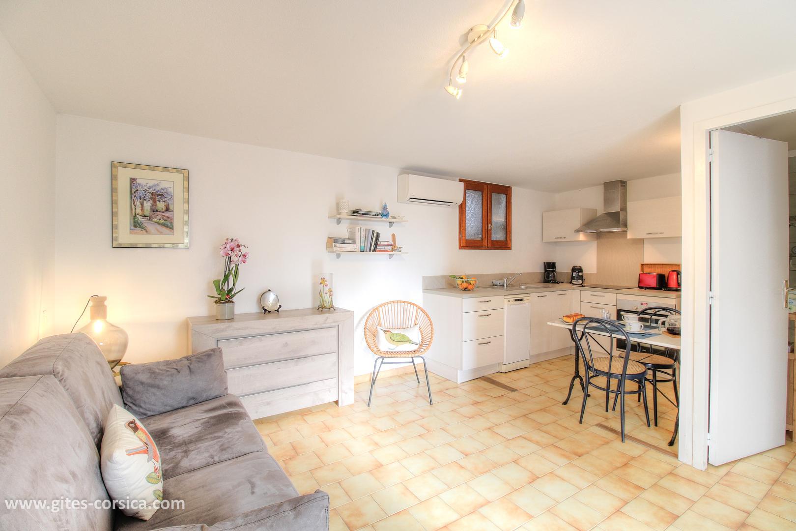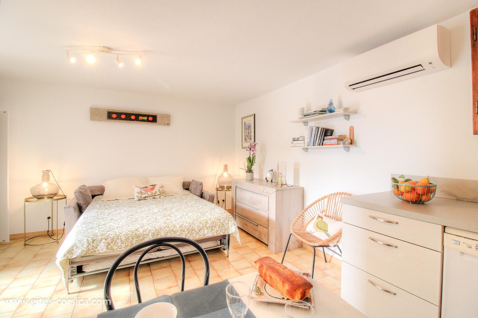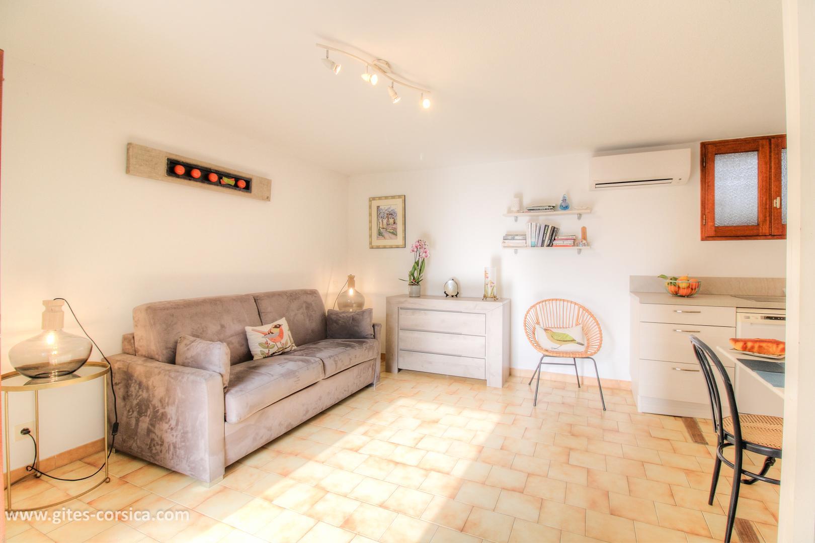 – Séjour/cuisine comprenant 1 convertible pour 2 personnes (140×190 cm)