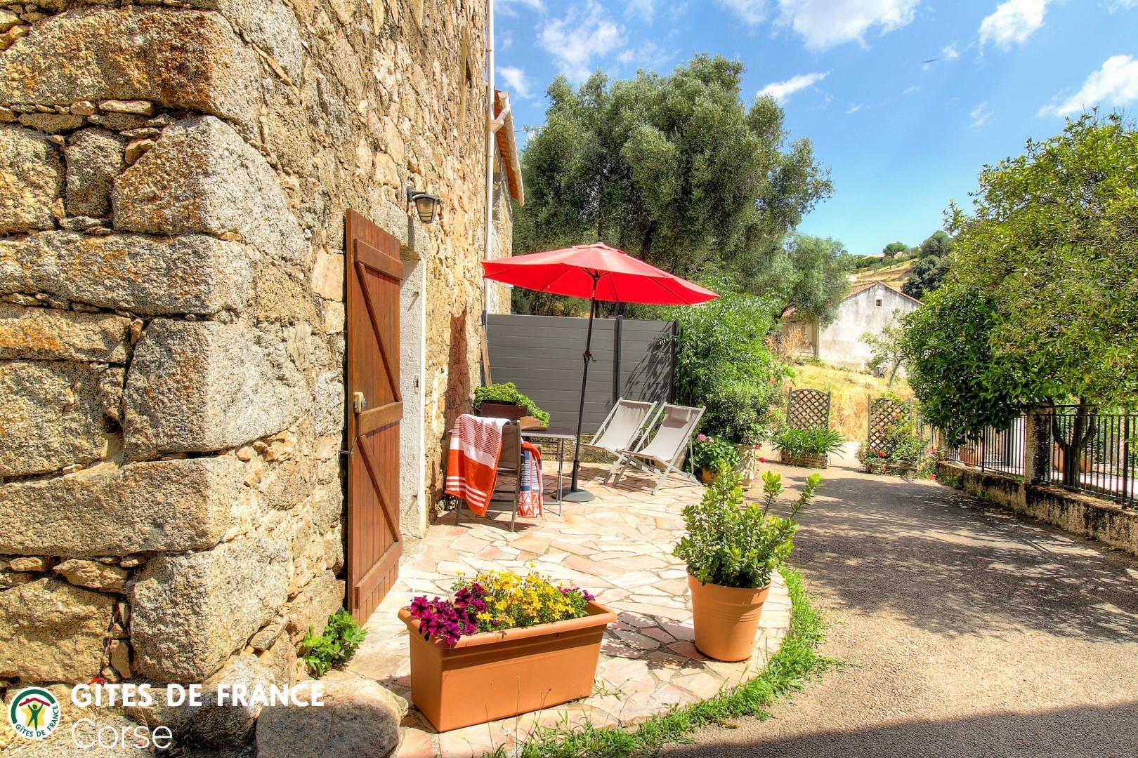 Dans le hameau : studio de 24 m² au rez-de-chaussée d’une maison mitoyenne en pierres comportant un autre logement à l’étage. Il se compose ainsi: